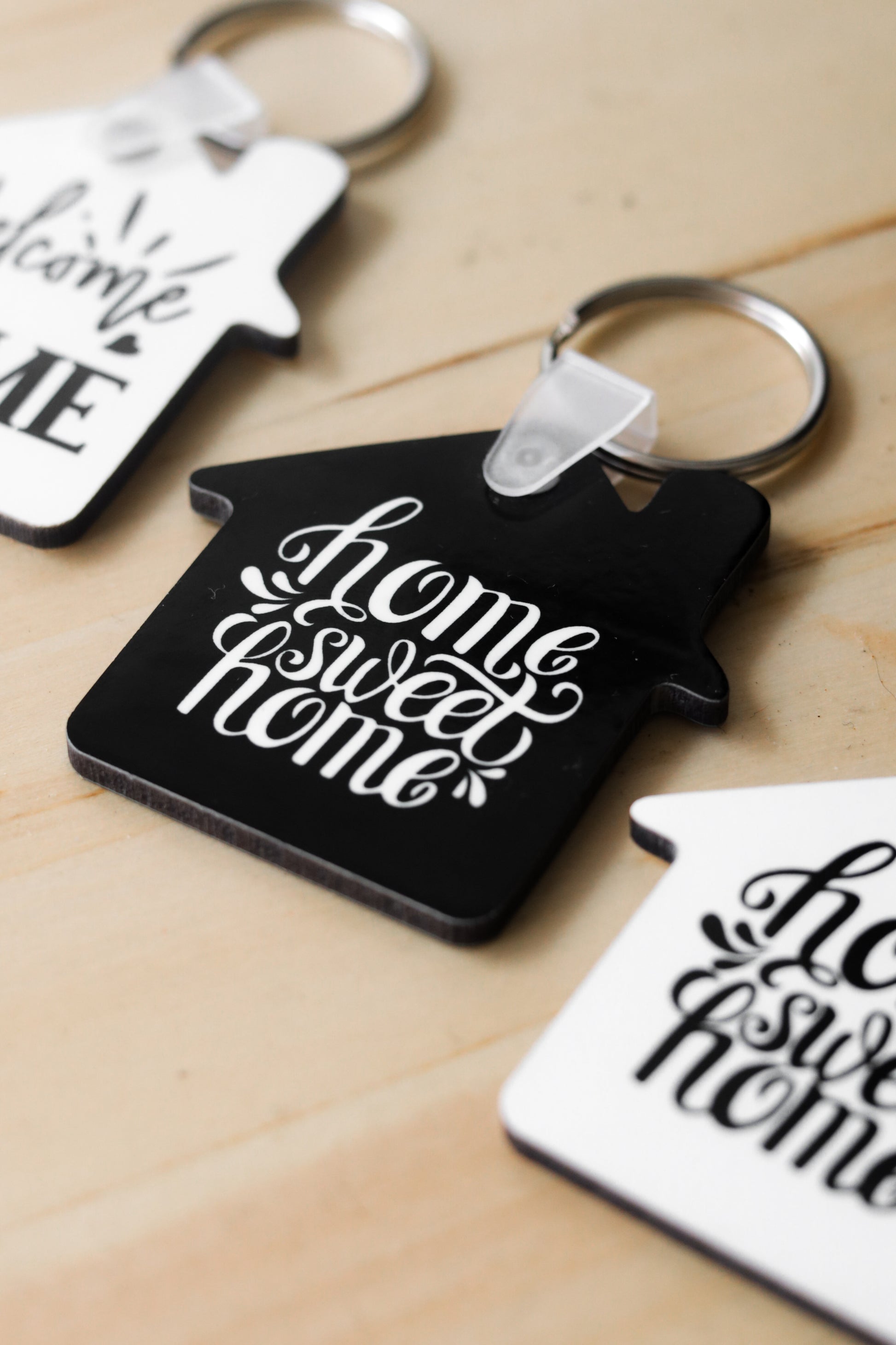 Our 2in X 2in keychains are made from MDF with a stainless steel keyring.
